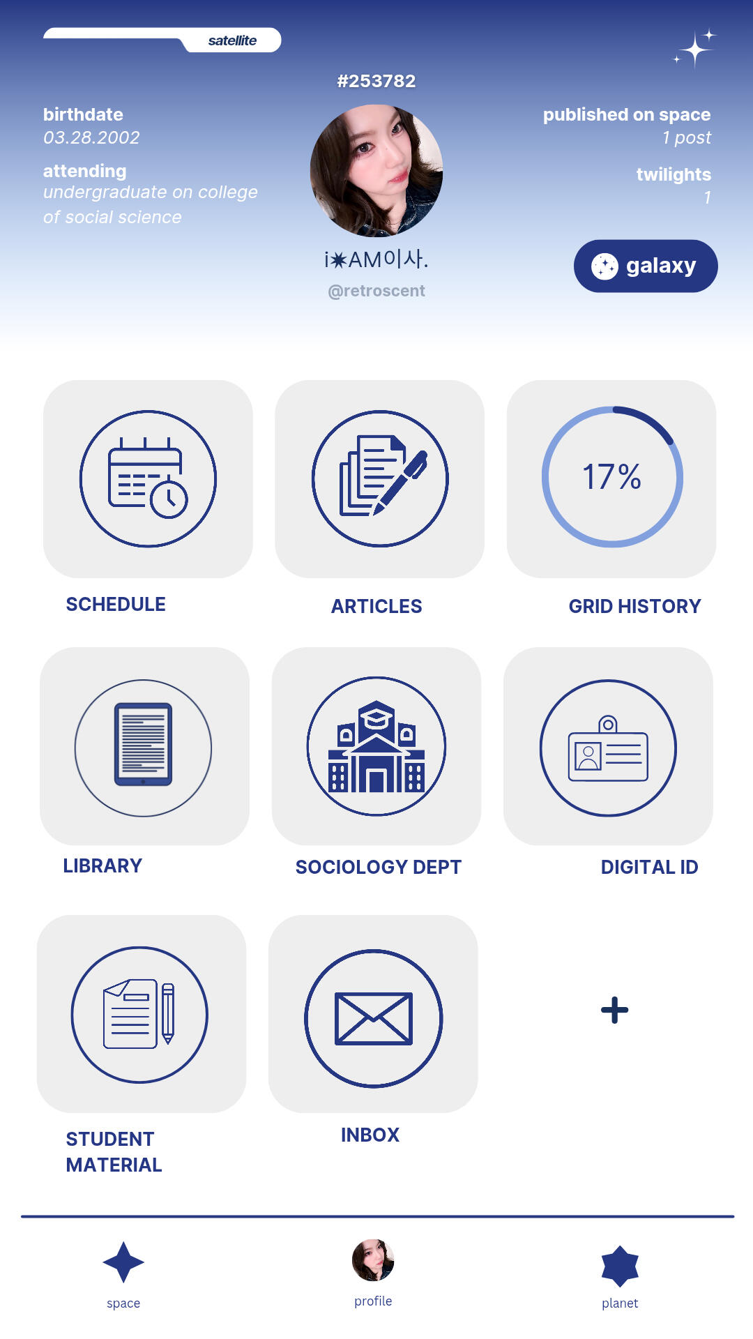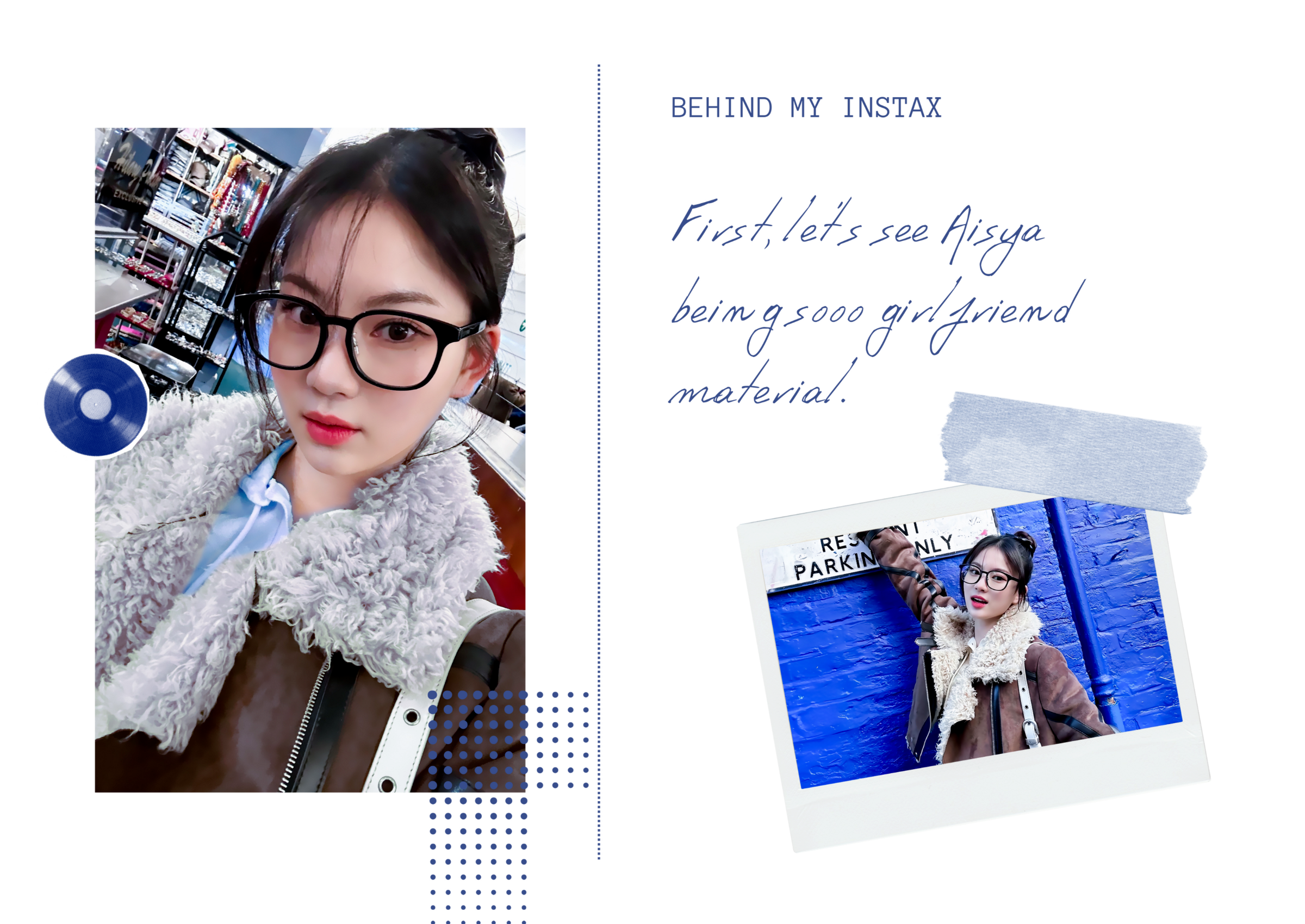 Nome: Moon "Acsa" Aisya (문아이사). Data de nascimento: 28/03/2002. Local de nascimento: Busan, Coréia do Sul. Reside atualmente: Seul, Coréia do Sul. Ocupação: Artista Independente, produtora, CEO do Blue Rising 528hz e graduanda em Ciências Sociais no Departamento de Sociologia na Universidade Feminina Ewha. Altura: 1,65m. Personalidade: ISFJ. 2w3. Fleumática dominante. Verdadeiro Neutro. EFLV. RCOAN. sx/sp. Idiomas: KR, PT-BR, ENG, JP. Sexualidade: Bissexual e monogâmica. Status: Indisponível. Mapa astrológico: Sol em Áries, Lua em Câncer e Ascendente em Escorpião. Apelidos: Sasa, Asa e Isa. Disfunções: CID 10 F84.1. ────────┈┈ Acessórios usuais: Óculos de grau ou lentes de contato, moletons, boinas e headphone. Sabor favorito: Melão e pêra. Aroma favorito: Floral-Frutado e Lavanda. Lugar favorito: Seu estúdio. Comida favorita: Tteokbokki de sua avó. Objeto favorito: Walkman com gravador de voz e guitarra elétrica.